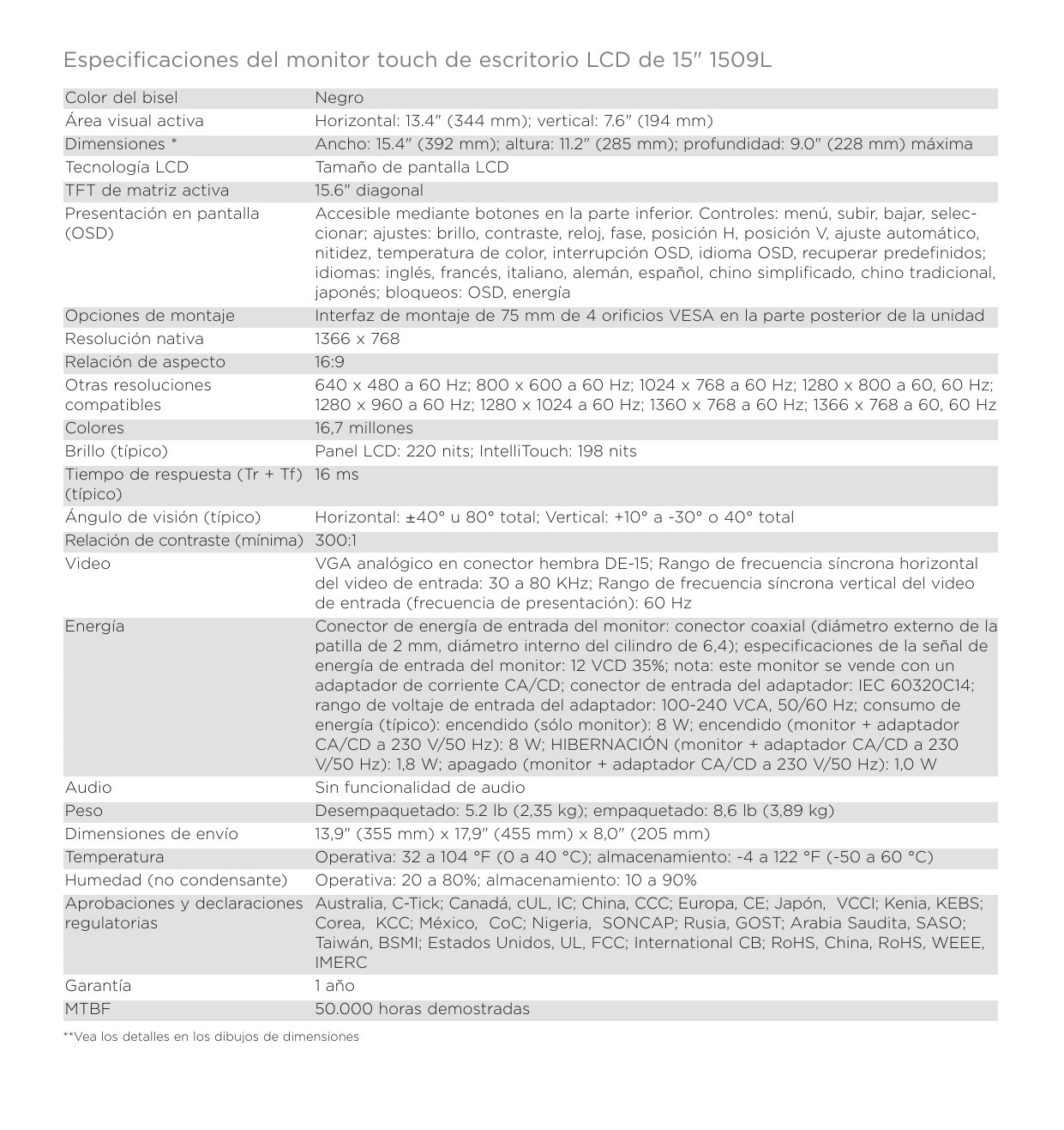 El 1509L es práctico y confiable que combina tecnología superior de pantalla touch a un precio muy competitivo.