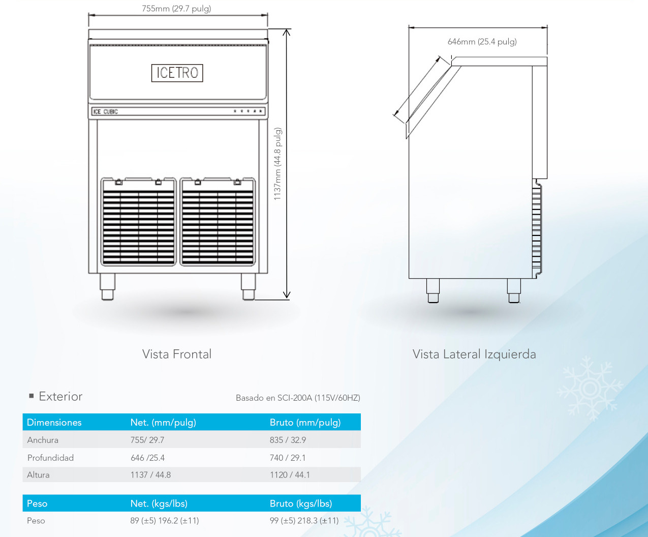 Capacidad de producción (Kg (lbs) / día) 108.3Kg (239lbs)