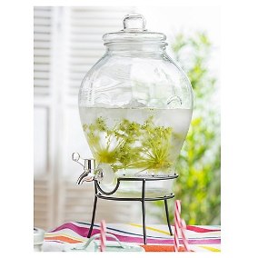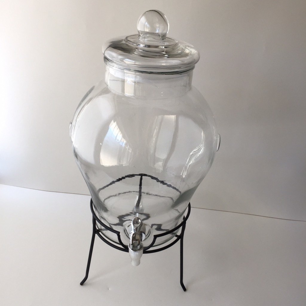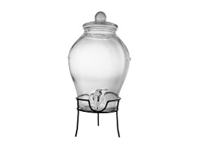 El Dispensador de vidrio con rack es un gran frasco que te permitirá exhibir tu bebidas de manera original en tus eventos, fiestas o cumpleaños. Gracias a su dispensador, te permitirá que tus invitados se sirvan algo de beber cada vez que lo deseen. Además, es transparente, volviendo evidente su contenido. Es ideal para lucirlo en una gran mesa, gracias a su elegante rack metálico.