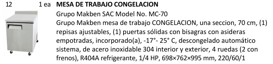 MESA DE TRABAJO – > MARCA: MAKBEN -> MODELO: MC‐150 ; realizamos entrega en las ciudades de Lima, Arequipa, Cusco , Moquegua , Tacna , Ica , Chiclayo , Trujillo, Cajamarca, Piura, Tumbes, iquitos, Huancayo , Ayacucho , Pucallpa, Huanuco , Cerro de Pasco ; llevamos mas de 10 años comercializando MAKBEN en Peru , somos especialistas importando mesa de trabajo, linea frio , mesa de trabajo congelacion, mesa de trabajo congelacion de 2 puertaMESA DE TRABAJO CONGELACION Grupo Makben MC‐150