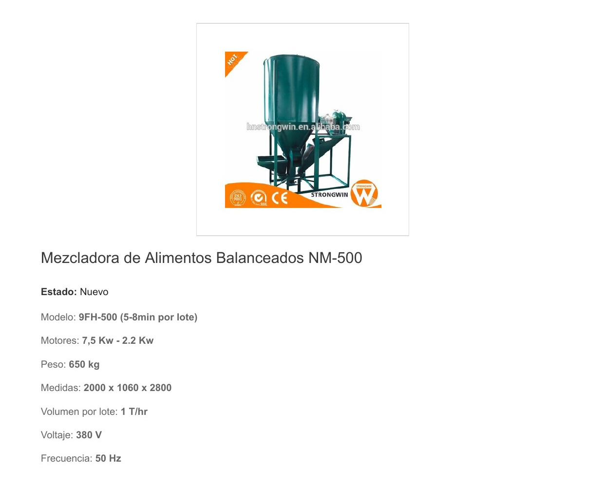 MEZCLADOR DE ALIMENTOS – > MARCA: MYNSAC -> MODELO: ; realizamos entrega en las ciudades de Lima, Arequipa, Cusco , Moquegua , Tacna , Ica , Chiclayo , Trujillo, Cajamarca, Piura, Tumbes, iquitos, Huancayo , Ayacucho , Pucallpa, Huanuco , Cerro de Pasco ; llevamos mas de 10 años comercializando MYNSAC en Peru , somos especialistas importando mezclador de alimentos, maquinas agroindustriales , mezclador de alimentos balanceados, mezclador de alimentos balanceados de 1 tn/hMezcladora y molino de Alimentos Balanceados NM-500 (vertical)