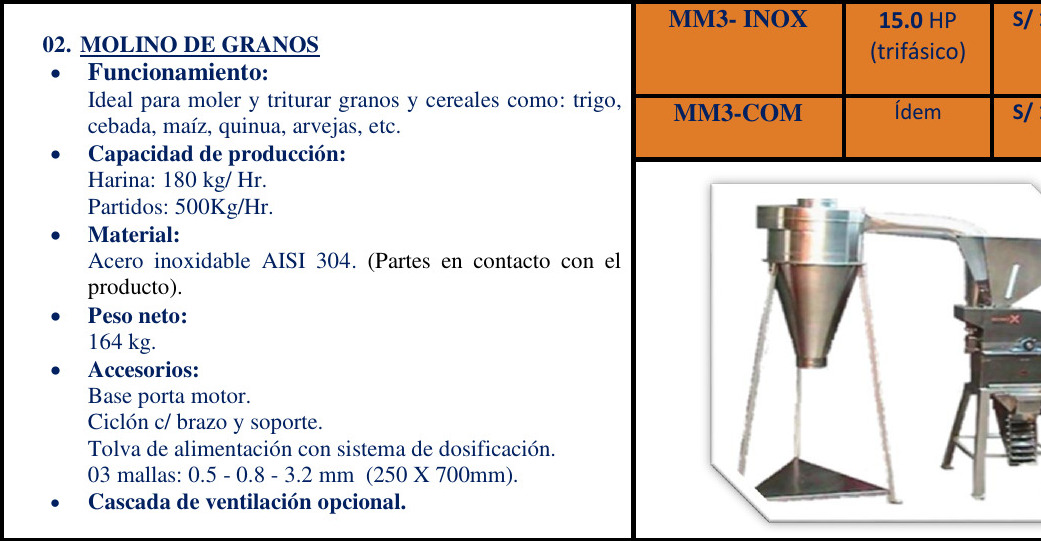 MOLINOS – > MARCA: PERUMINOX -> MODELO: MM3- INOX