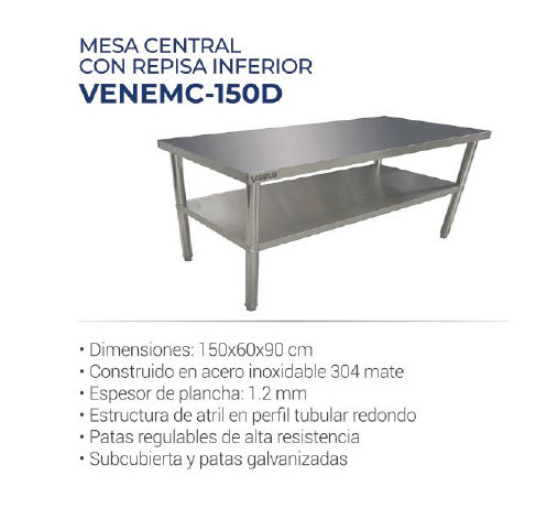 · Mesa central de acero con repisa inferior.