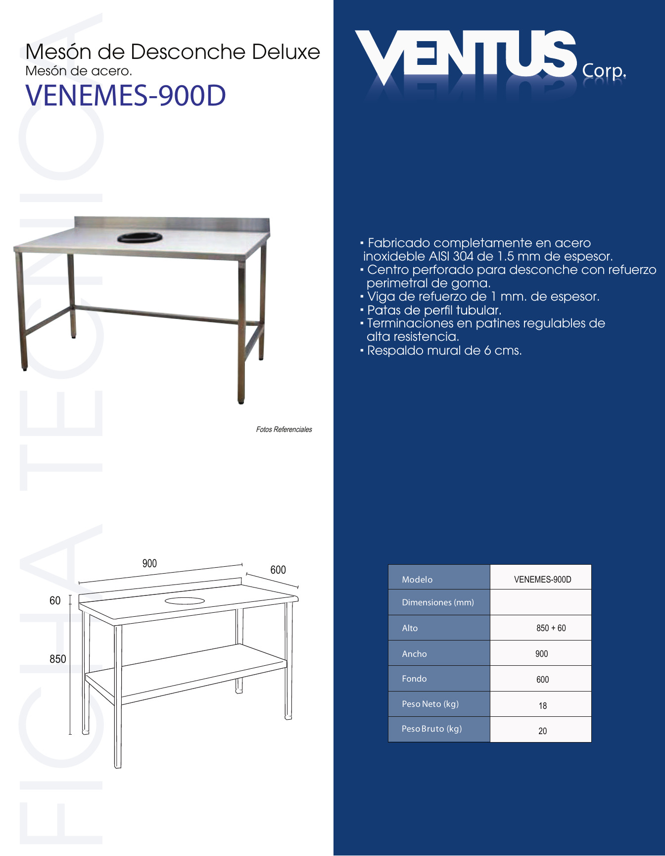 MESON DE DESCONCHE – > MARCA: VENTUS -> MODELO: VENEMES-900D ; realizamos entrega en las ciudades de Lima, Arequipa, Cusco , Moquegua , Tacna , Ica , Chiclayo , Trujillo, Cajamarca, Piura, Tumbes, iquitos, Huancayo , Ayacucho , Pucallpa, Huanuco , Cerro de Pasco ; llevamos mas de 10 años comercializando VENTUS en Peru , somos especialistas importando meson de desconche, linea carpinteria metalica , meson de desconche deluxe, meson de acero inoxidableMeson de desconche Deluxe VENEMES-900D