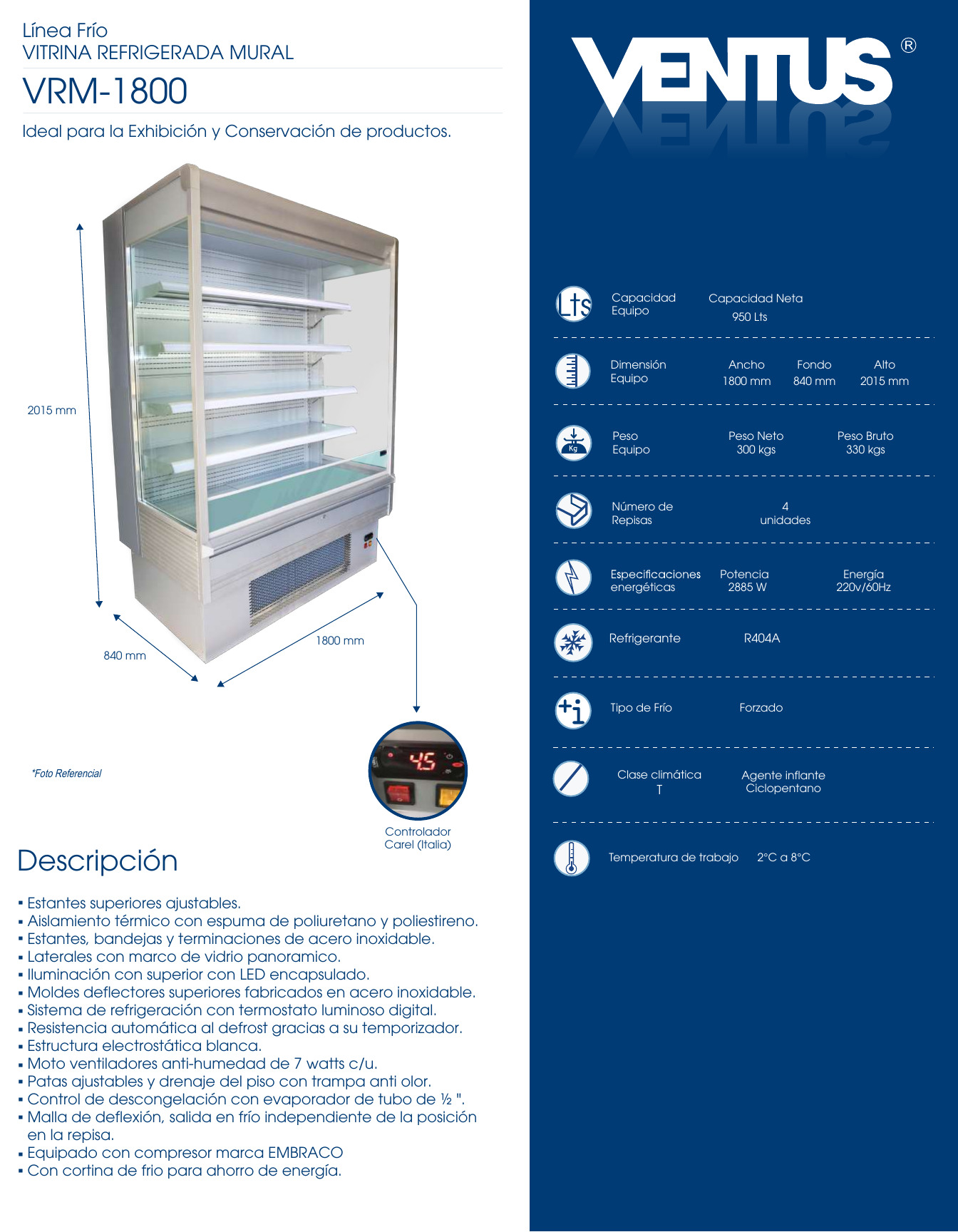 VITRINAS – > MARCA: VENTUS -> MODELO: VRM-1800 ; realizamos entrega en las ciudades de Lima, Arequipa, Cusco , Moquegua , Tacna , Ica , Chiclayo , Trujillo, Cajamarca, Piura, Tumbes, iquitos, Huancayo , Ayacucho , Pucallpa, Huanuco , Cerro de Pasco ; llevamos mas de 10 años comercializando VENTUS en Peru , somos especialistas importando vitrinas, linea frio , vitrinas refrigeradas, vitrinas refrigeradas tipo mural Vitrina refrigerada mural 1800 VRM-1800