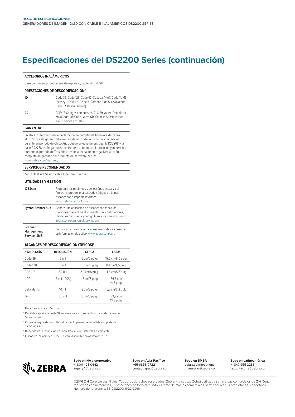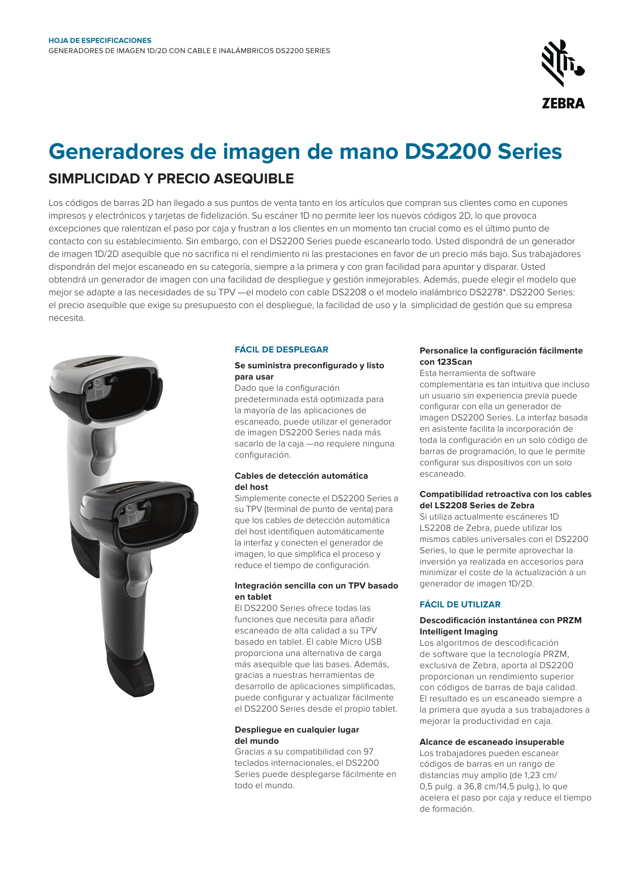 Opciones de modelo: DS2208 con cable o DS2278 inalámbrico