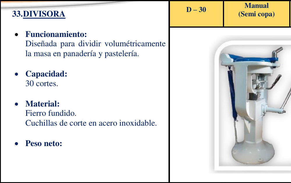 DIVISORA DE PAN – > MARCA: PERUMINOX -> MODELO: D-30