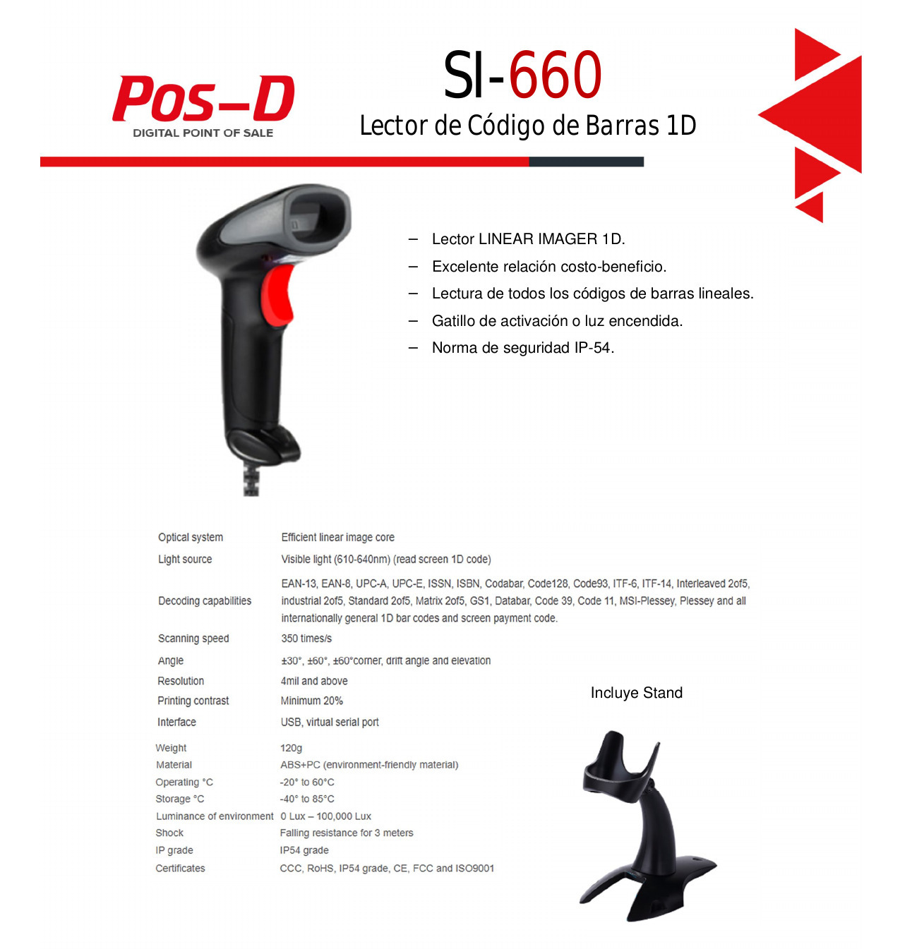 LECTOR DE CODIGO DE BARRAS ALAMBRICO – > MARCA: POS-D -> MODELO: SI 660 ; realizamos entrega en las ciudades de Lima, Arequipa, Cusco , Moquegua , Tacna , Ica , Chiclayo , Trujillo, Cajamarca, Piura, Tumbes, iquitos, Huancayo , Ayacucho , Pucallpa, Huanuco , Cerro de Pasco ; llevamos mas de 10 años comercializando POS-D en Peru , somos especialistas importando lector de codigo de barras alambrico, lector de codigo de barras , lector de codigos de barra con cable, lector de codigo de barras 1dLECTOR DE CÓDIGOS DE BARRA CON CABLE POS-D SI 660