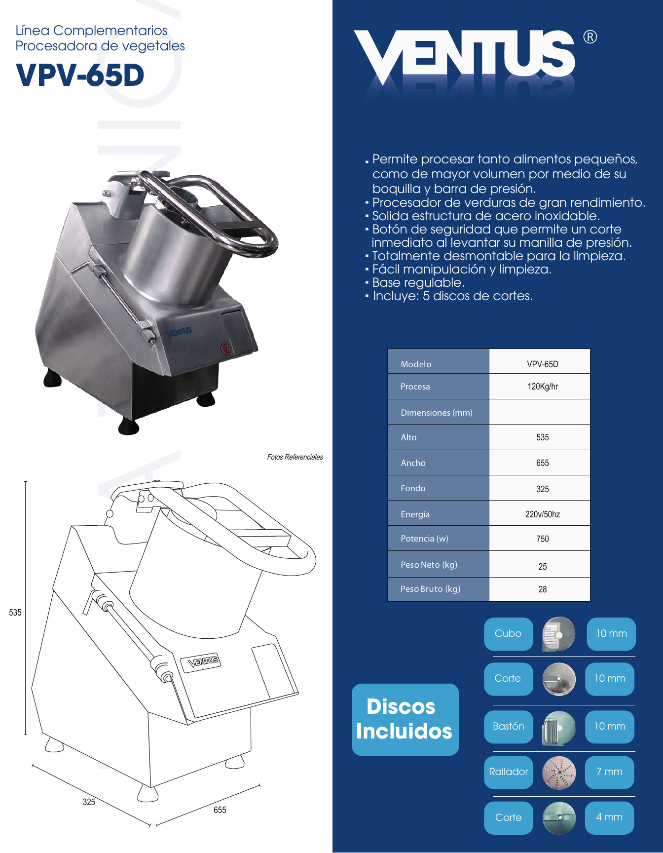 PROCESADOR DE VEGETALES MARCA: VENTUS MODELO: VPV-65D