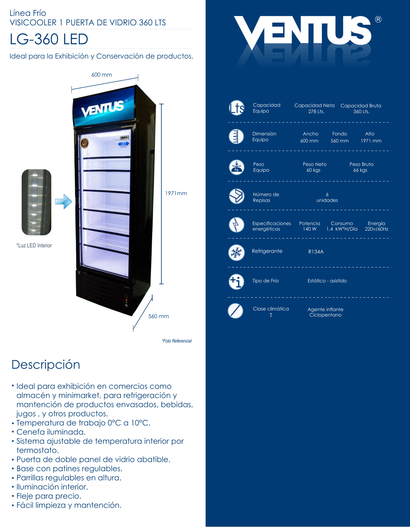 VISICOOLER – > MARCA: VENTUS -> MODELO: LG-360 LED ; realizamos entrega en las ciudades de Lima, Arequipa, Cusco , Moquegua , Tacna , Ica , Chiclayo , Trujillo, Cajamarca, Piura, Tumbes, iquitos, Huancayo , Ayacucho , Pucallpa, Huanuco , Cerro de Pasco ; llevamos mas de 10 años comercializando VENTUS en Peru , somos especialistas importando visicooler, linea frio , visicooler de 1 puerta, visicooler de 360 litrosVisi-cooler 1 pta 360 lts LG-360 LED
