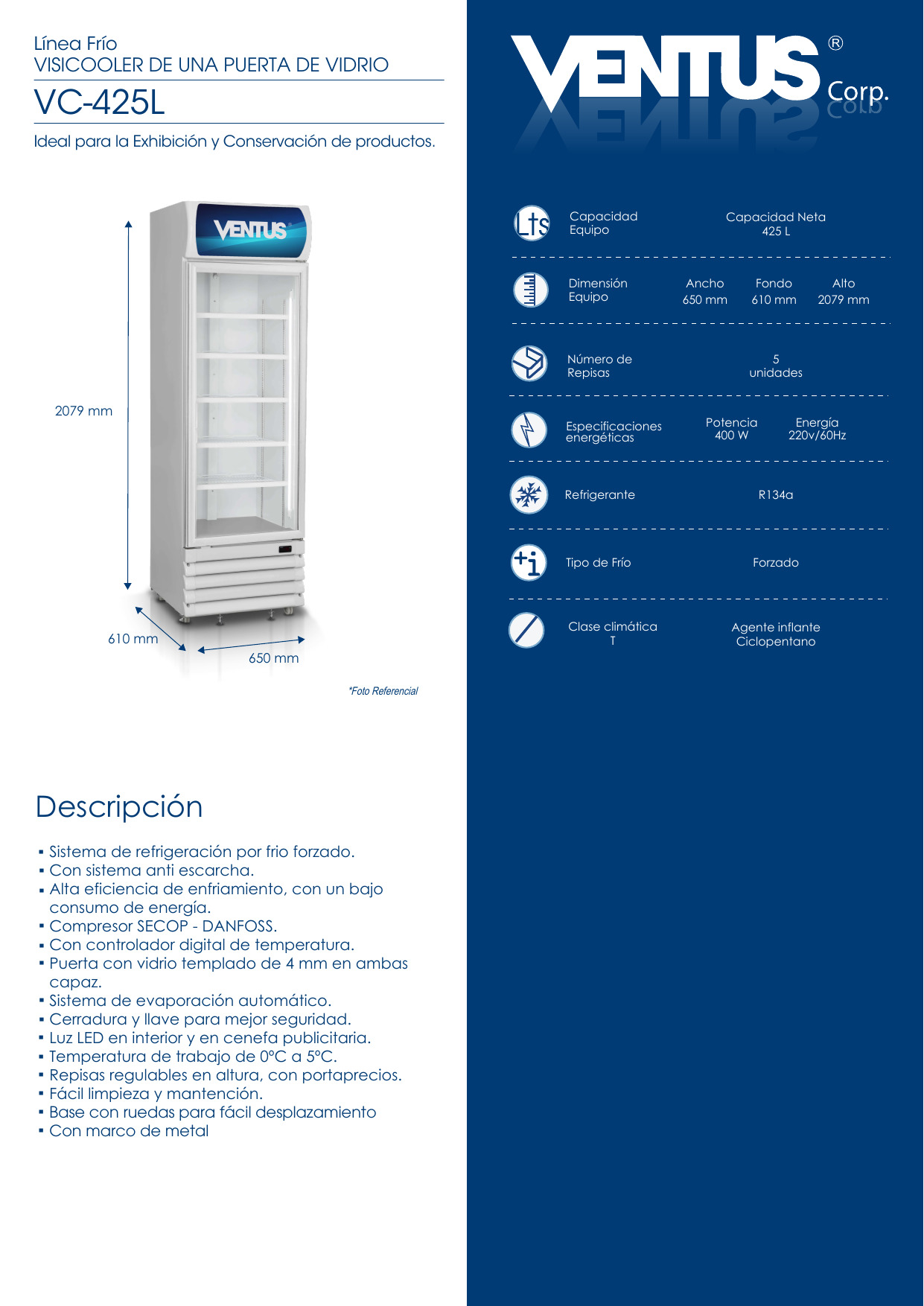 VISICOOLER – > MARCA: VENTUS -> MODELO: VC-425L ; realizamos entrega en las ciudades de Lima, Arequipa, Cusco , Moquegua , Tacna , Ica , Chiclayo , Trujillo, Cajamarca, Piura, Tumbes, iquitos, Huancayo , Ayacucho , Pucallpa, Huanuco , Cerro de Pasco ; llevamos mas de 10 años comercializando VENTUS en Peru , somos especialistas importando visicooler, linea frio , visicooler de 1 puerta, visicooler de 425 litrosVisi-cooler 1 puerta Cap. 425 lts VC-425L