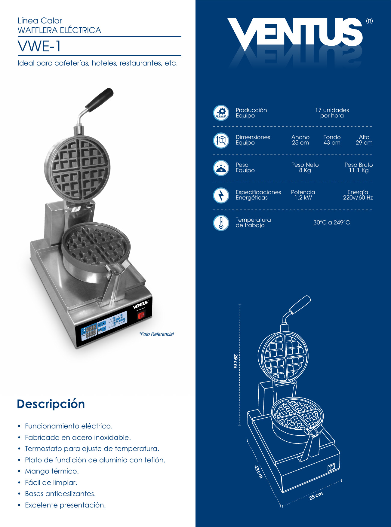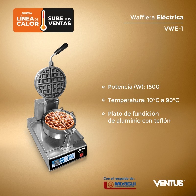 WAFFLERA – > MARCA: VENTUS -> MODELO: VWE-1 ; realizamos entrega en las ciudades de Lima, Arequipa, Cusco , Moquegua , Tacna , Ica , Chiclayo , Trujillo, Cajamarca, Piura, Tumbes, iquitos, Huancayo , Ayacucho , Pucallpa, Huanuco , Cerro de Pasco ; llevamos mas de 10 años comercializando VENTUS en Peru , somos especialistas importando wafflera , linea calor , wafflera electrica , wafflera electrica unicaWafflera electrica VWE-1